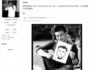 網(wǎng)友開博客紀(jì)念李曉明,圖為博客首頁(yè)截圖?!。▽O艷 制作) |