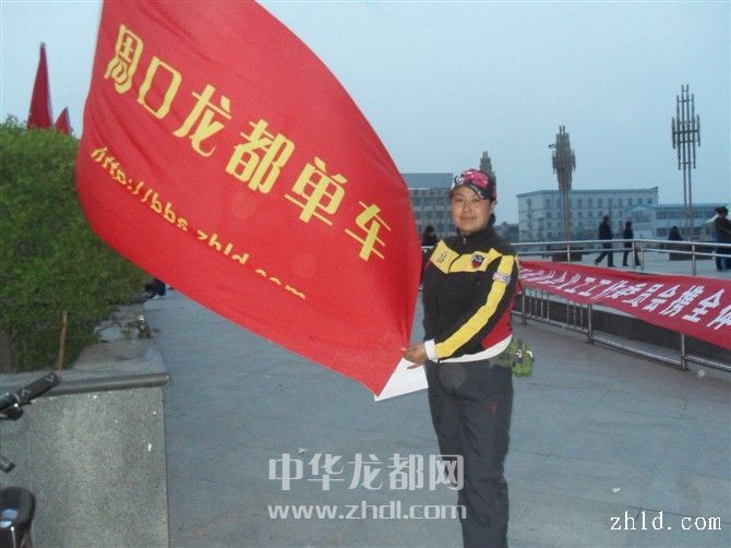 4月18日傍晚,一名網(wǎng)友把“周口龍都單車”旗幟插在五一廣場(chǎng),為祈福活動(dòng)布置場(chǎng)地。