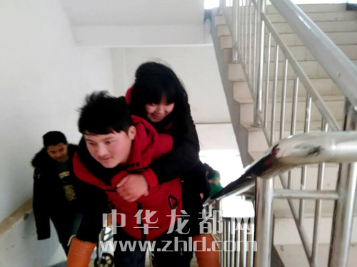 ????雷偉每隔幾天就背一次孔雪珂,這已成了他學校生活的一部分。“除了我背孔雪珂上下樓外,我們班其他26個男生也都背過她。我作為班長,理應多做一些?!卑芽籽╃姘踩偷浇淌?,雷偉有點不好意思地說,“第一次背她,我有點兒害羞,但如今已經(jīng)習慣了?!?/p>