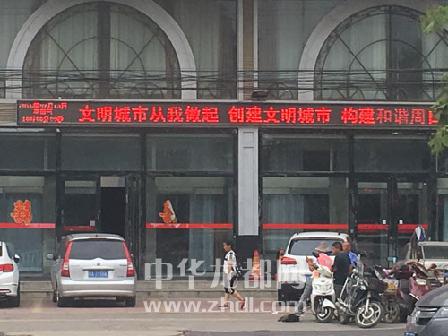 ????為全力打好省級文明城市創(chuàng)建攻堅戰(zhàn),很多商家也積極加入進來,用各自力所能及的方式來支持“創(chuàng)城”工作。圖為中心城區(qū)一酒店在門前的LED顯示屏上打出創(chuàng)建省級文明城市的宣傳標語。