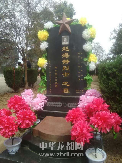 ????2015年10月,周口市鹽業(yè)局干部康國(guó)富和胡東周受市委組織部指派,到商水縣鄧城鎮(zhèn)周莊村駐村。2016年3月,康國(guó)富和胡東周在村里召開(kāi)黨員大會(huì)時(shí),偶然了解到趙海靜的事跡,深受感動(dòng)。他們經(jīng)過(guò)調(diào)查、走訪,確認(rèn)了趙海靜烈士的事跡。于是,他們先后向周口市委組織部、商水縣委組織部有關(guān)領(lǐng)導(dǎo)作了匯報(bào),懇請(qǐng)有關(guān)部門(mén)為趙海靜修墓立碑。他們的請(qǐng)求得到了市縣兩級(jí)組織部門(mén)的大力支持,鄧城鎮(zhèn)民政所和商水縣民政局聞?dòng)嵑笠卜e極配合。