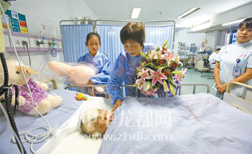 ????11日下午3時,溫州醫(yī)科大學(xué)附屬第二醫(yī)院方面就童童的病情做了通報:手術(shù)后,童童頭部等處傷勢已有好轉(zhuǎn),右手無名指的血液循環(huán)也恢復(fù)良好。童童體溫正常,心率穩(wěn)定,呼吸平穩(wěn),目前病情基本穩(wěn)定,如果能平穩(wěn)度過72小時,就將進入恢復(fù)期。