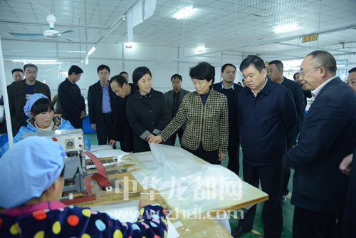 ????省委常委、宣傳部長趙素萍一行在市領(lǐng)導徐光等人的陪同下,到鄲城縣企業(yè)調(diào)研。記者 王亞輝 攝
