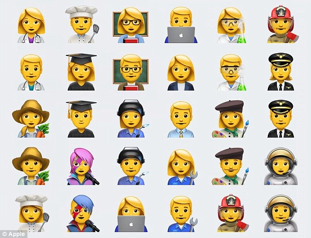 ????這一系列表情由統(tǒng)一碼聯(lián)盟于今年6月份更新,作為Unicode 9.0更新的一部分。72款最新表情中,包含“交叉手指”、“捂臉”“牛油果”“小丑”等表情。除此之外,還包括一系列動物,如大猩猩、狐貍、鴨子、魷魚等。其中,最大的變化在于包括了可以選擇性別的各類職業(yè),如宇航員、消防員、焊接工,甚至搖滾明星。