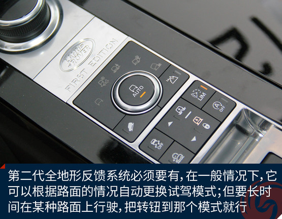 第二代全地形反饋系統(tǒng)必須有,它的特點(diǎn)是在任何非AUTO模式下,且車速低于50公里/時(shí),車身會(huì)自動(dòng)升高75毫米,以此應(yīng)對(duì)復(fù)雜越野需求。而全地形反饋系統(tǒng),同時(shí)能夠提升車輛的發(fā)動(dòng)機(jī)、變速箱、中央差速器和底盤的性能,使駕駛者可以根據(jù)具體地形選擇合適的駕駛模式。