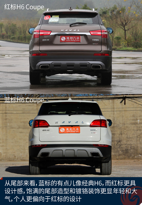 從車尾來看,個人認為新款的紅標好像比藍標更加年輕,可能是設計年款導致的,新一些的設計更加年輕,當然也不失沉穩(wěn),不過藍標的H6 Coupe看起來確實更具個性。紅標更符合大眾的審美。