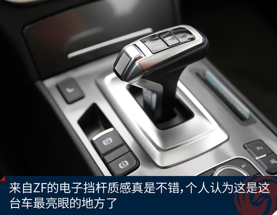 當然,這些東西同級別中或許都能看到,不算稀奇,如果說這臺車與藍標的最大區(qū)別,就得說儀表板中間的電子擋桿了,第一眼看到就被它的質感吸引了,一點兒都不像在15萬這個級別中能看到的配置,與自家H2s一樣來自ZF的電子擋桿握感完美,操作方便,跟奧迪、寶馬等車的操作體驗沒什么區(qū)別。
