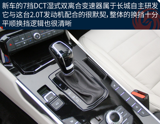 由于渦輪介入的時間稍晚一些,起步時不會讓你感覺特別的輕快,但也不會差到讓你無法接受,只要保持平常心就好;當這臺2.0升的渦輪增壓直噴發(fā)動機真的卯足了勁發(fā)力之后,360牛米的最大扭矩完全不是鬧著玩的,后背感覺有人在猛使勁的把你向前推。長城自主研發(fā)的7擋濕式雙離合變速器是新車的一大亮點,日常駕駛的過程中升降檔都有著不錯的平順性,不過起步初期離合器結(jié)合的速度還是稍微有一些慢,急加速時變速箱的反應(yīng)也不夠靈敏,這在一定程度上拖累了整體的動力表現(xiàn)。