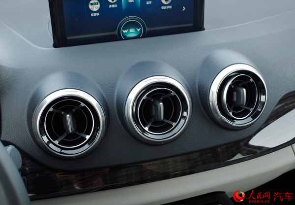 坐進(jìn)車內(nèi),或許能更直觀地感受到長城為WEY品牌的首款車型所營造的豪華氛圍?;蛟S“豪華”二字并不是最準(zhǔn)確的形容詞,因?yàn)閂V7的內(nèi)飾設(shè)計更多地傳遞了一種科技感。大傾斜角度的中控臺上,有著寬大的飾板區(qū)分上下兩層,圓形的空調(diào)出風(fēng)口設(shè)計巧妙且有型,給你不錯的印象。