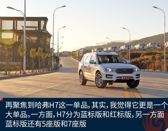 再聚焦到哈弗H7這一單品,其實(shí),我覺得它更是一個(gè)大單品。一方面,H7分為藍(lán)標(biāo)版和紅標(biāo)版,另一方面,藍(lán)標(biāo)版還有5座版和7座版。關(guān)于定位,紅標(biāo)5座,大氣、豪華;藍(lán)標(biāo)5座,時(shí)尚、運(yùn)動(dòng);藍(lán)標(biāo)7座,沉穩(wěn)、硬朗。據(jù)悉,未來不排除推出紅標(biāo)7座版車型,具體需要根據(jù)市場反饋來決定。