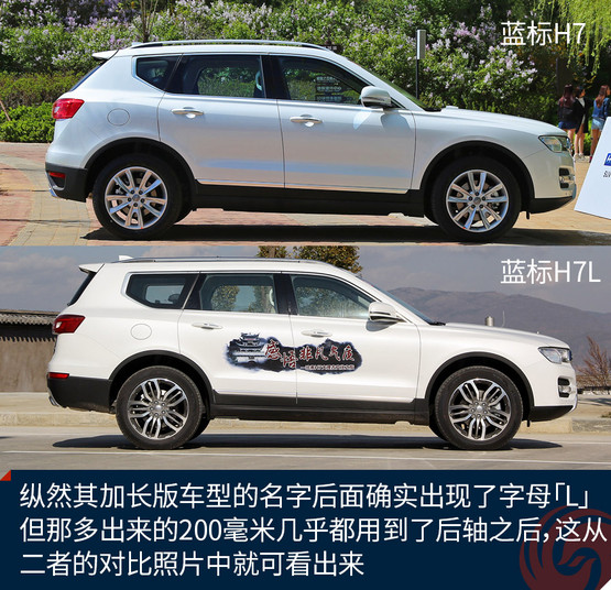 提到加長,我腦子中的第一反應(yīng)是軸距加長幾十甚至上百毫米,然而,哈弗藍(lán)標(biāo)H7L并不是這樣。縱然其加長版車型的名字后面確實(shí)出現(xiàn)了字母「L」,但那多出來的200毫米幾乎都用到了后軸之后,這從二者的對(duì)比照片中就可看出來。