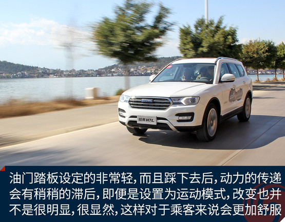 既然是7座車型,藍(lán)標(biāo)H7L在調(diào)校方面也更加注重舒適,這一點(diǎn)從油門踏板可以很明顯的感覺到。油門踏板設(shè)定的非常輕,而且踩下去后,動(dòng)力的傳遞會(huì)有稍稍的滯后,即便是設(shè)置為運(yùn)動(dòng)模式,改變也并不是很明顯,很顯然,這樣對(duì)于乘客來說會(huì)更加舒服。相比于油門踏板,剎車踏板則力度適中且比較線性。