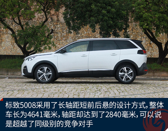 和市面上的一些7座SUV不同,標(biāo)致5008采用了長軸距短前后懸的設(shè)計方式,這樣的設(shè)計更多的出現(xiàn)在運動派車型上。標(biāo)致5008的整體車長為4641毫米,軸距卻達到了2840毫米,可以說是超越了同級別的競爭對手。
