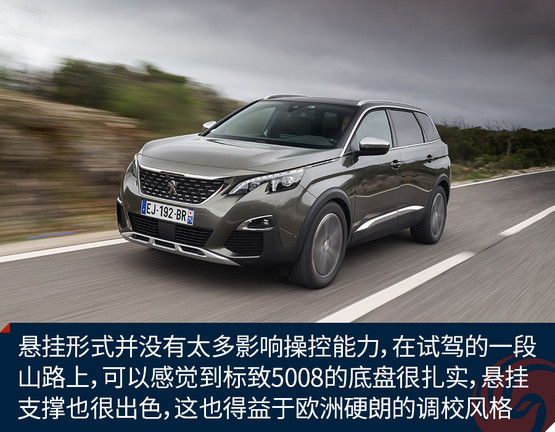 不過懸掛形式并沒有太多影響這款車的操控能力,在試駕的一段山路上,可以感覺到標(biāo)致5008的底盤很扎實,懸掛支撐也很出色,這也得益于歐洲硬朗的調(diào)校風(fēng)格。