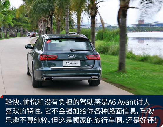 ????????作為原裝進口車,奧迪A6 Avant的底盤懸掛設(shè)定不像國產(chǎn)奧迪A6L那種偏向關(guān)照后排的VIP,再加上標配運動型懸掛縮減了懸掛行程,A6 Avant旅行車開起來明顯比A6L來的犀利和動感,我并不是說它像RS 6 Avant那樣有種讓人上癮而無法自拔的“毒力”,但作為一臺有著濃郁個人主義色彩又需要兼顧全家使用的車型,奧迪A6 Avant是那種該穩(wěn)就穩(wěn),要快也能快的理想設(shè)定。