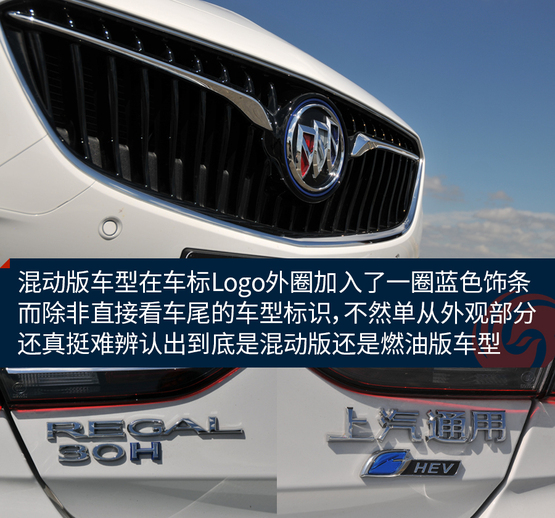 ????????仔細對比才會發(fā)現(xiàn),混動版車型在車標Logo外圈加入了一圈藍色飾條,而除非直接看車尾的車型標識,不然單從外觀部分還真挺難辨認出到底是混動版還是燃油版車型。