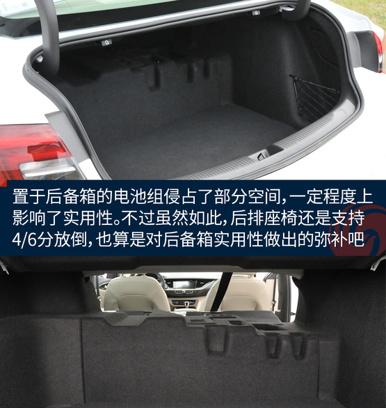 ????????置于后備箱的電池組侵占了部分空間,空間表現(xiàn)由燃油車型的434升縮至328升,在一定程度上影響了實用性。不過雖然如此,后排座椅還是支持4/6分放倒,這也算是對后備箱實用性做出的彌補吧。