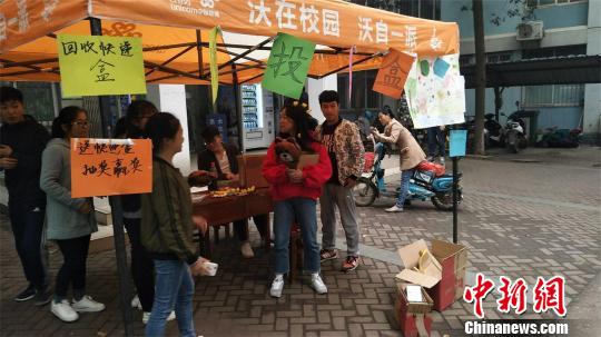 ????這個快遞盒回收公益活動由該校商學院物流專業(yè)學生發(fā)起,35名學生分別到該校宿舍七號樓、二號樓、四號樓三個固定站點進行盒子回收。此外,每天利用中午、晚上休息的時間去寢室上門回收。