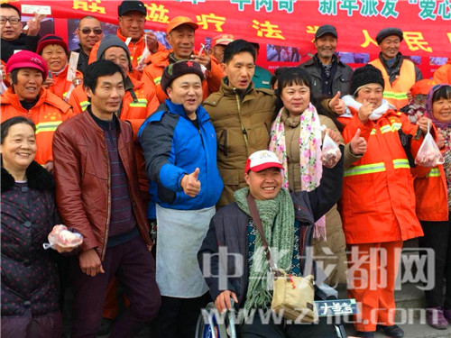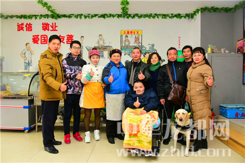 孫合理(左一)與領羊肉的殘疾朋友合影。