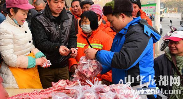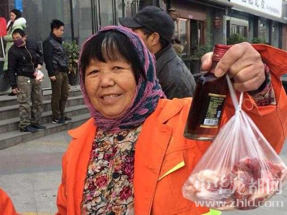 一名環(huán)衛(wèi)工人領到了羊肉。