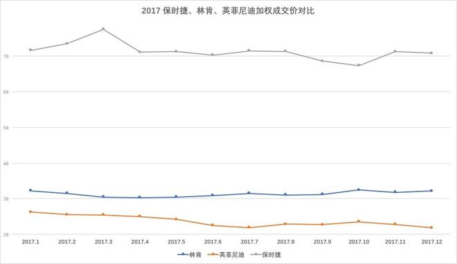 保時(shí)捷、林肯、英菲尼迪銷量在5-10萬(wàn)之間為第三陣營(yíng),保時(shí)捷品牌比較節(jié)制,對(duì)銷量一直沒(méi)有過(guò)多追求,銷售方式與其他豪華品牌不同,多以訂單方式銷售,經(jīng)銷商利潤(rùn)連續(xù)兩年行業(yè)中為最好;全進(jìn)口車型為主的林肯成交價(jià)在39萬(wàn)上下,今年銷量增速最快,價(jià)格走勢(shì)也非常好,但產(chǎn)品進(jìn)入銷售中期,與其他品牌新款車型對(duì)比不占優(yōu)勢(shì);英菲尼迪今年沒(méi)有太多走量新車,國(guó)產(chǎn)車型也面臨改款,成交價(jià)在30萬(wàn)上下,隨新款QX50上市,Q50L改款,銷量和成交價(jià)有望走高。