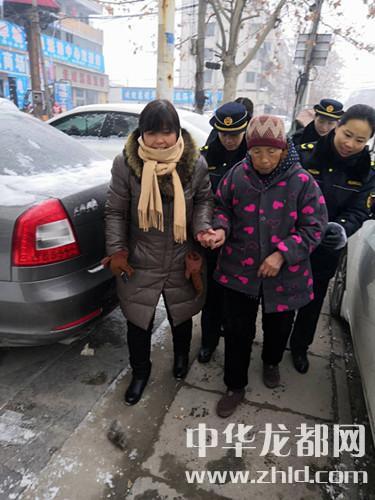 當(dāng)日早上8點(diǎn)15分許,正在西華縣明德小學(xué)附近執(zhí)勤的縣城管局女子中隊(duì)的一名隊(duì)員突然發(fā)現(xiàn)一位老婆婆時(shí)而左右張望,時(shí)而喃喃自語。這名隊(duì)員立即上前詢問該名老人是否遇到困難時(shí),還未等隊(duì)員說話,老人就張口說:“閨女,我不知道回家的路了?!苯?jīng)過耐心溝通得知,老人當(dāng)日從老家來縣城找閨女,但是忘了閨女家怎么走。老人只記得兒子的名字,其它一無所知。女子中隊(duì)的隊(duì)員們一邊安撫老人的情緒,一邊把老人的情況、照片與其兒子的姓名等信息發(fā)到西華縣城市管理工作群,并用對(duì)講機(jī)通知讓大家共同關(guān)注幫忙尋求線索。城市管理工作群的群?jiǎn)T們及時(shí)把信息轉(zhuǎn)發(fā)到朋友圈,很快工作群里有了回復(fù)信息,有人認(rèn)識(shí)老人的兒子,并提供了聯(lián)絡(luò)方式等信息。通過電話溝通,證實(shí)了高某正是老人的兒子。因?yàn)樘鞖夂洌胫先诵袆?dòng)不便而且容易著涼,為盡快把老人送到家人身邊,女子中隊(duì)的隊(duì)員們隨即把老人扶上車送其回家。