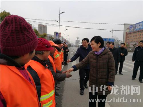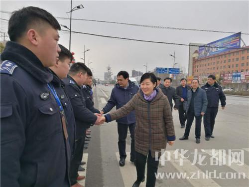 在鄲城縣城新華路與迎賓大道路口,羅文閣、李全林和一線值勤的環(huán)衛(wèi)工人、城管隊(duì)員一一握手,深切關(guān)心環(huán)衛(wèi)工人和城管隊(duì)員的冷暖?!翱词侄鄾?,要穿厚點(diǎn)兒呀。大年三十了,你們放棄和家人團(tuán)圓吃餃子的機(jī)會(huì),在為我們的縣城保潔,我們城市的清潔有賴于你們。你們辛苦了,給你們拜個(gè)年,祝你們身體健康。”羅文閣向環(huán)衛(wèi)工人遞上慰問金時(shí),樸實(shí)的話語、殷殷的關(guān)懷把黨的溫暖涌向環(huán)衛(wèi)工人的心窩兒?!安恍量?,領(lǐng)導(dǎo)來看俺,俺里比吃餃子暖和?!杯h(huán)衛(wèi)工人邊鼓掌邊道出了內(nèi)心的激動(dòng)。