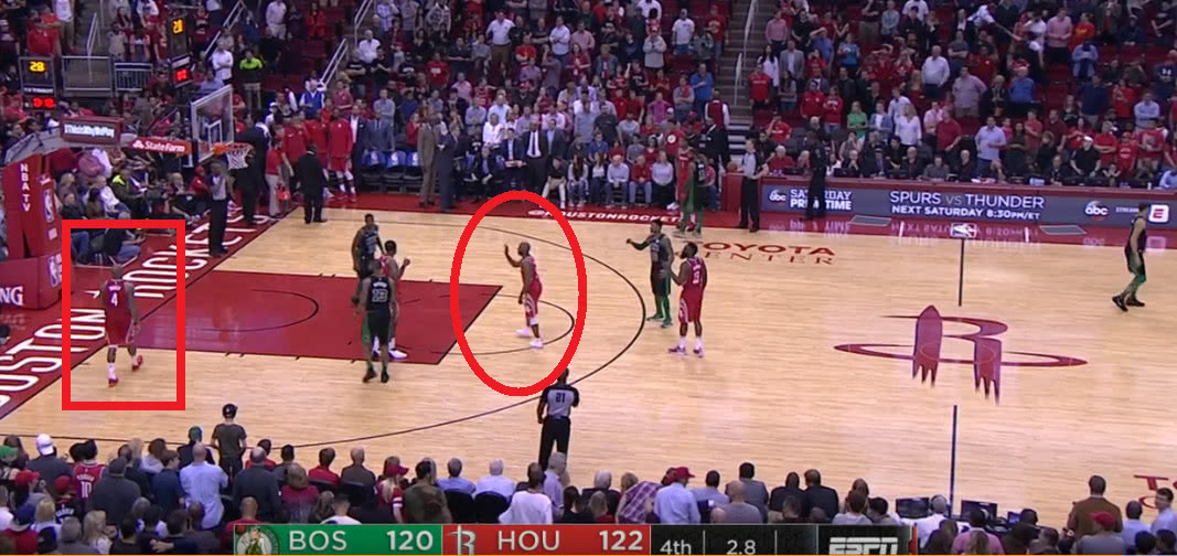 在比賽進(jìn)行到最后2.8秒的時(shí)候火箭只領(lǐng)先綠軍2分,這也就是說什么事情都可能會(huì)發(fā)生。而在這個(gè)時(shí)候火箭發(fā)邊線球,就當(dāng)火箭要發(fā)球的時(shí)候我們從上圖可以看到有6名球員在場(chǎng)上,而這個(gè)時(shí)候大局觀智商高超的保羅一眼就看了出來,他先是對(duì)著塔克大喊出去不過這時(shí)的塔克依舊慢慢悠悠,而這時(shí)的保羅都已經(jīng)跳了起來怒吼塔克讓其趕快出去。不得不說如果不是保羅這智商這大局觀一旦火箭發(fā)出球來那么無疑就是一個(gè)技術(shù)犯規(guī),那么最終火箭能不能取得勝利就真的不好說了。