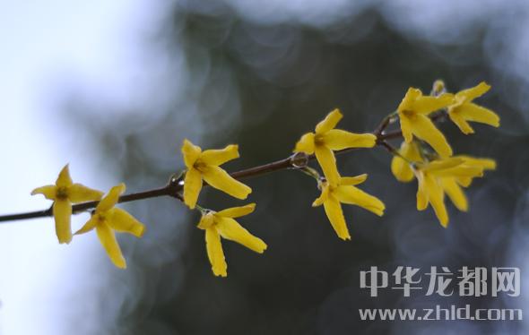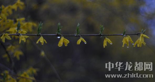 中華龍都網(wǎng)訊(周口報業(yè)全媒體記者 朱海龍 文/圖 )迎春花和連翹有些相似,花兒小巧,成串地分布在花枝上,花兒金黃,雨水的潤澤使她顯得分外嬌艷,大有臨風(fēng)而綻的仙姿靈骨。