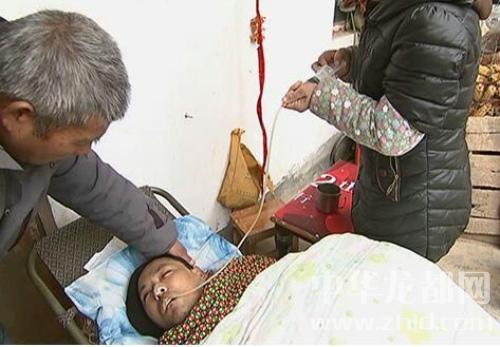 病人叫張肖,家住太康縣遜母口鎮(zhèn)劉橋行政村邵莊村,此人人脈很好、平時精明能干,曾在洛陽等地承包工地搞建筑。2015年3月的一天夜里10時許,他和朋友晚飯后騎車回住地途中,不慎摔倒在地。當(dāng)時,暈暈乎乎感覺沒事,回家就休息了,第二天已不省人事,在鄭大一附院做了開顱手術(shù),光淤血抽出來100多毫升,頭腫的眼都看不見。張肖的父親張德印回憶說張肖在鄭治療花費60多萬,由于無力支付高額醫(yī)療費用,轉(zhuǎn)診到太康縣醫(yī)院又花十多萬。令人惋惜的是,張肖錯過了最佳治療時間,從此成了植物人。