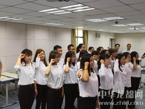 宣誓儀式在雄壯的國歌聲中拉開帷幕。新教師面對鮮艷的五星紅旗,莊嚴(yán)宣誓,隨后新教師和老教師代表分別發(fā)言。