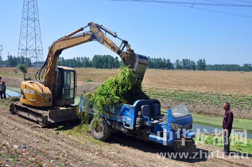 為切實(shí)做好環(huán)境整治工作,近日,商水縣加大環(huán)保督察問題整改工作力度,開展大排查、大整治、大掃除行動,確保整改到位。6月12日,一臺大型機(jī)械正在打撈運(yùn)送河道水面上的漂浮垃圾(上圖);工作人員正在駕駛小船打撈河道水面上的雜草和垃圾(下圖)。記者 付永奇 通訊員 魏紅 攝