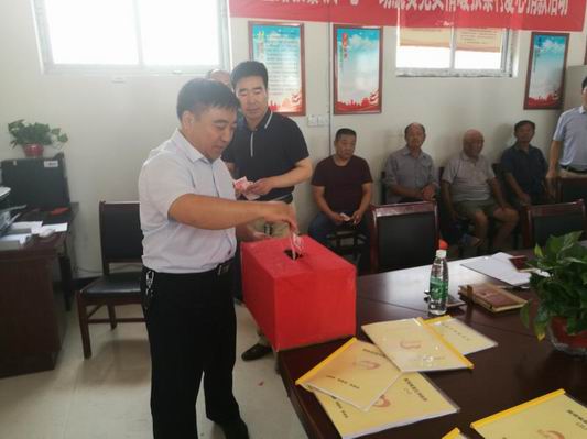 閆振清帶領(lǐng)全體黨員重溫入黨誓詞并與大家一起給張寨村黨支部捐款共計(jì)3000余元。