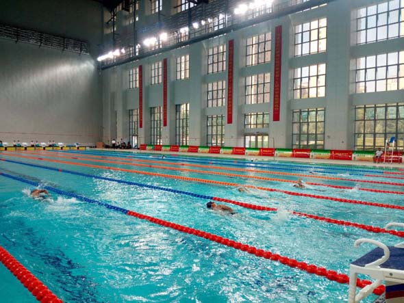 據(jù)了解,市游泳館占地面積4.4萬平方米,總建筑面積24398.69平方米,地上建筑面積20846.08平方米,地下建筑面積3552.61平方米,地上三層、地下一層,可容納觀眾1200人。市游泳館內(nèi)共有兩個(gè)大的泳池,一個(gè)比賽用,長50米、寬25米,規(guī)格達(dá)到奧運(yùn)會游泳比賽泳池標(biāo)準(zhǔn),比賽時(shí)水深將達(dá)到2米;另外一個(gè)練習(xí)用,供參賽選手熱身,水深1.2米。