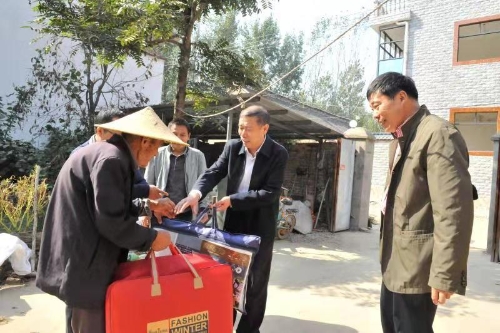為進(jìn)一步弘揚(yáng)中華民族敬老、愛(ài)老、助老的優(yōu)良傳統(tǒng)美德,讓結(jié)隊(duì)幫扶村——太康縣王集鄉(xiāng)李小橋行政村90歲及以上老人過(guò)一個(gè)溫馨又和諧的重陽(yáng)佳節(jié),10月12日,周口市稅務(wù)局黨委委員、副局長(zhǎng)徐平烽,黨委委員、總會(huì)計(jì)師李霞,黨委委員、總經(jīng)濟(jì)師張振祥等在對(duì)全村9名高齡老人進(jìn)行了走訪慰問(wèn),為老人們送上節(jié)日的祝福和價(jià)值近2000元的慰問(wèn)品。