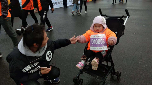 “重在參與,讓寶寶也感受一下馬拉松的比賽的氣氛,目的還是帶孩子活動(dòng)活動(dòng),從小養(yǎng)成一個(gè)運(yùn)動(dòng)的好習(xí)慣?!币σ壮康膵寢屵@樣介紹。