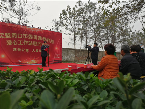 11月21日上午,民盟周口市委到黃寨敬老院慰問(wèn)。周口市人大常委會(huì)原副主任、民盟周口市委原主委王建莊,民盟周口市委主委、市科協(xié)主席李寧,民盟周口市委專(zhuān)職副主委兼秘書(shū)長(zhǎng)康波;商水縣委副書(shū)記、政法委書(shū)記閆冬梅,縣政協(xié)副主席、發(fā)改委主任朱學(xué)習(xí),縣民政局局長(zhǎng)朱赫,黃寨鎮(zhèn)黨委書(shū)記朱宏偉,鎮(zhèn)長(zhǎng)高延等參加慰問(wèn)活動(dòng)。
