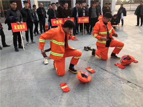 來自消防安全重點單位的8個代表隊作為第一支隊伍進(jìn)行體能、技能競賽。體能技能競賽設(shè)有兩盤水帶連接、50米負(fù)重跑、原地著戰(zhàn)斗服和俯臥撐4個項目,參賽隊員斗志昂揚、技能精湛,充分的展示了微型消防站建設(shè)取得的成績和微型站隊員敢打必勝的良好精神風(fēng)貌,為首屆行業(yè)系統(tǒng)微型消防站業(yè)務(wù)技能比武大賽開了一個好頭。