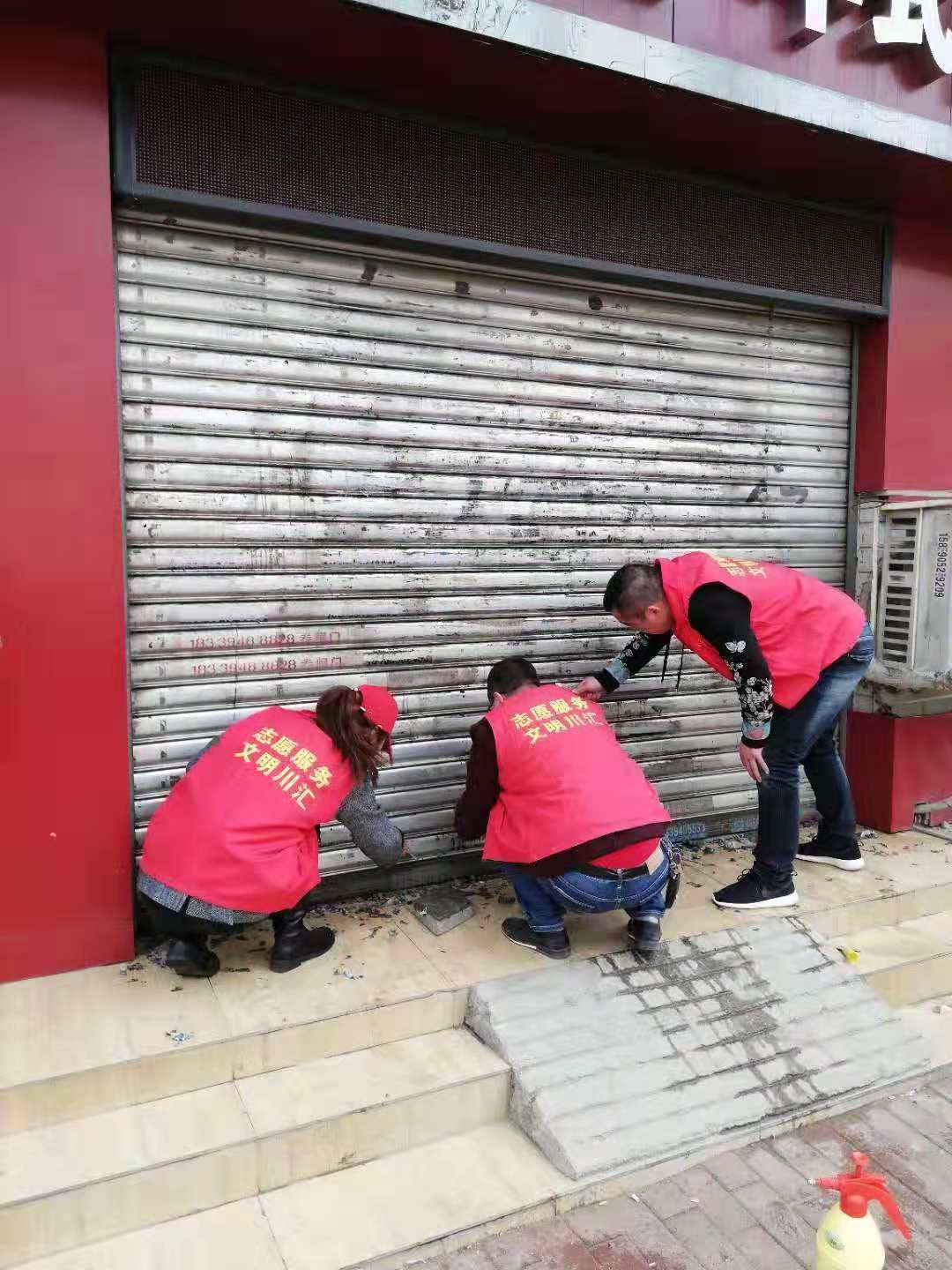 作為城市管理和市容環(huán)境整治的“主戰(zhàn)場”,川匯區(qū)自11月起設立“市容工作日”,進一步深化“五城聯(lián)創(chuàng)”工作,切實改善中心城區(qū)面貌。11月27日,“市容工作日”活動正式啟動,川匯區(qū)各單位紛紛組織志愿者走上街頭,在各自轄區(qū)開展小廣告清理等環(huán)境綜合整治工作。圖一為志愿者粉刷布滿小廣告的建筑物外墻。圖二為志愿者清理地面上的小廣告。圖三為志愿者清理卷閘門上的小廣告。