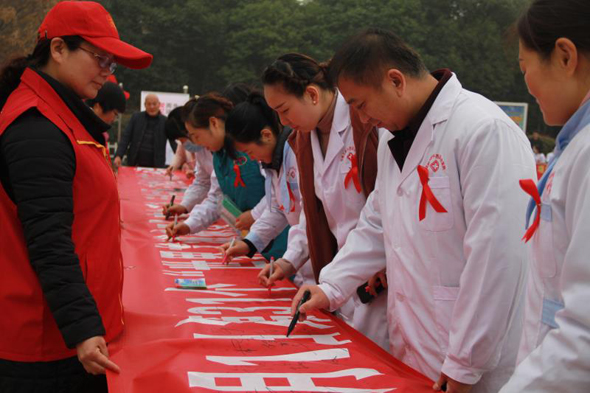 11月30日上午,由項(xiàng)城市衛(wèi)生計(jì)生委組織,來自項(xiàng)城市疾控中心、市第一人民醫(yī)院、市中醫(yī)院、市婦幼保健院及市內(nèi)的其它十余家醫(yī)療機(jī)構(gòu),共同在該市人民公園舉行第31個(gè)“主動(dòng)檢測,知艾防艾,共享健康”的“世界艾滋病日”主題宣傳活動(dòng)。活動(dòng)現(xiàn)場,醫(yī)護(hù)人員共向群眾發(fā)放宣傳資料1800余冊(cè)(種),接受230多人次的咨詢服務(wù),大力宣傳倡導(dǎo)建立文明健康的生活方式,并希望大家都能正視艾滋、關(guān)注艾滋、預(yù)防艾滋。