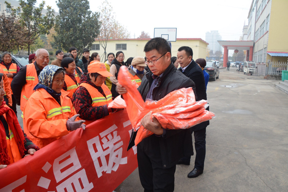 近日寒流來襲,氣溫驟降,連續(xù)的低溫降雨天氣讓人感受到了冬天的寒冷,為了確??h城區(qū)環(huán)境衛(wèi)生干凈整潔,廣大環(huán)衛(wèi)工人們始終堅(jiān)持冒嚴(yán)寒每天起早貪黑打掃城區(qū)衛(wèi)生,默默無聞堅(jiān)守在工作一線。12月3日,西華縣媧城商會(huì)會(huì)長黃鳳芝攜手愛心企業(yè)山西汾酒集團(tuán)代理商宋二領(lǐng)來到城管局向環(huán)衛(wèi)工人捐贈(zèng)一批環(huán)衛(wèi)保潔防寒服,在寒冷冬天為堅(jiān)守縣城區(qū)保潔一線的每位環(huán)衛(wèi)工人送去溫暖。