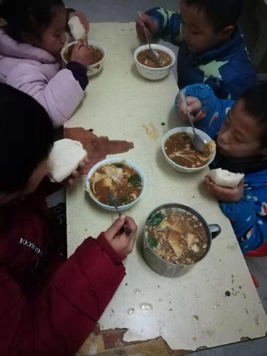 羅冬梅老師給住宿的孩子們送來自家榨的芝麻香油,張成英老師送來自己做的四喜丸子,馬艷林老師送來了倆只雞、倆條魚,劉鑫宇的奶奶給孩子們送來自己腌制的蘿卜干……
