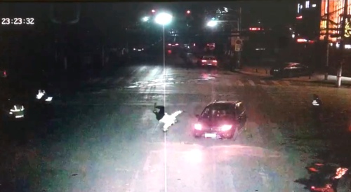 當(dāng)晚23時23分,這輛車號為P733B1的黑色東風(fēng)風(fēng)行SUV汽車出現(xiàn)在路口。在強行闖過民警設(shè)立的卡點時后,又試圖左拐向文化路方向逃離,在路口西北角執(zhí)勤的路查四中隊協(xié)警石巖快速上前攔截。孰料,該車不但未停,反而加速向前沖,石巖躲閃不及被撞到該車擋風(fēng)玻璃后又被撞出數(shù)米遠(yuǎn),重重地摔在馬路上。