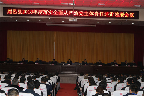 1月4日上午,鹿邑縣2018年度落實(shí)全面從嚴(yán)治黨主體責(zé)任述責(zé)述廉會(huì)議在縣委黨校一樓報(bào)告廳召開(kāi)。縣委書(shū)記梁建松出席會(huì)議并講話??h委常委、紀(jì)委監(jiān)察委主任韓林主持會(huì)議??h直各局委主要負(fù)責(zé)人、派駐紀(jì)檢組、巡查辦主要負(fù)責(zé)人以及各鄉(xiāng)鎮(zhèn)辦事處黨(工)委書(shū)記、紀(jì)檢書(shū)記參加會(huì)議。