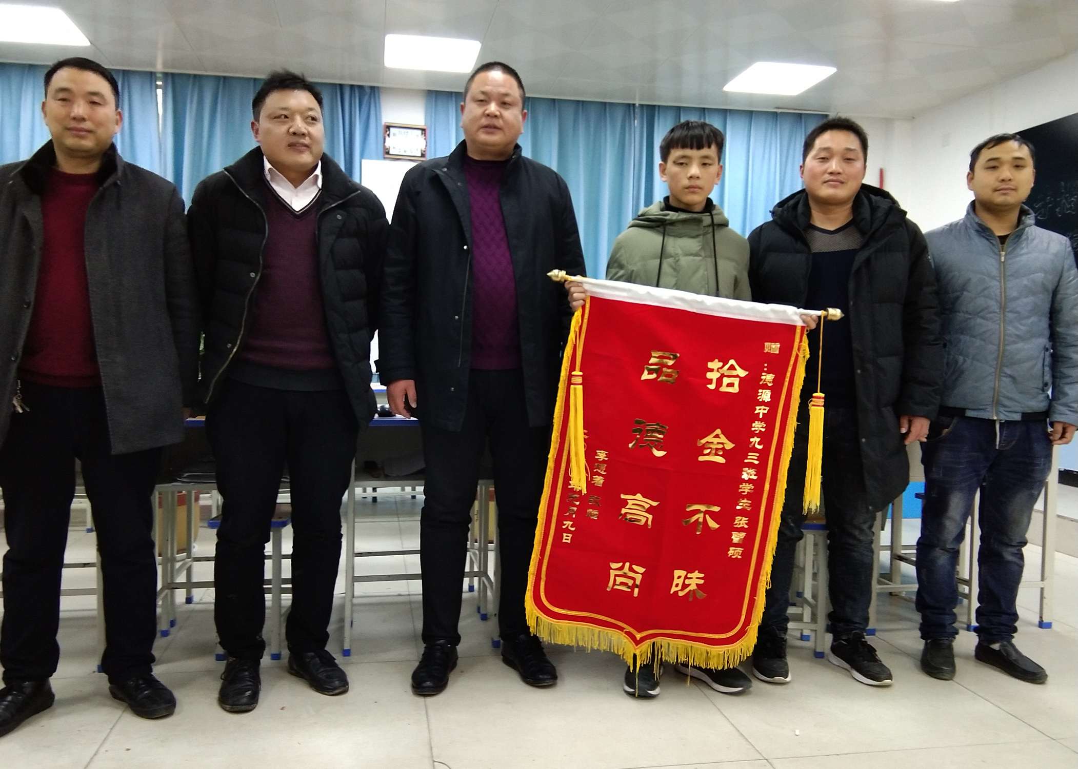 “我還以為找不回來了,里面除了錢還有那么多重要的證件,真的太重要了,我中午急著辦事情飯都吃不下!”下午3時,失主李想著手拿一面加急制作的錦旗來到學校向張曾碩和尹紀偉老師表示感謝。他說,能有這樣品質(zhì)高尚、拾金不昧的好孩子,是老師精心培養(yǎng)、父母言傳身教的結(jié)果。