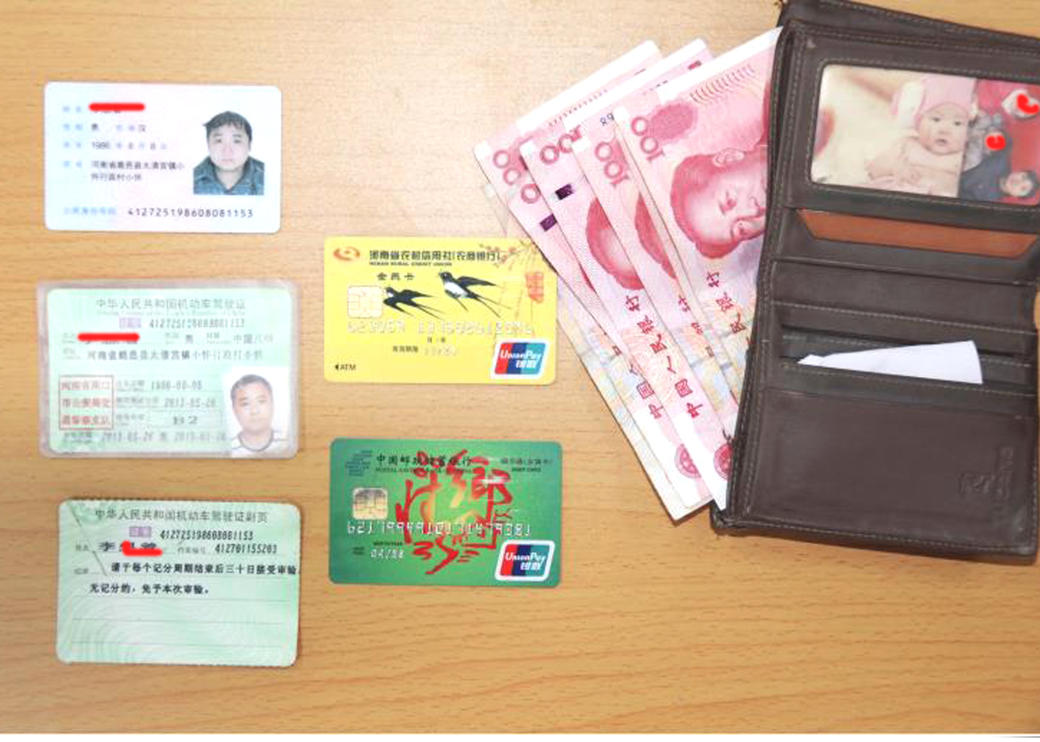 1月9日下午1時許,和往常一樣,鹿邑縣德源中學的師生們吃了午飯,匆忙進班。在初中教學樓五樓,九年級三班班主任尹紀偉被跑得氣喘吁吁學生張曾碩攔住了,他告訴尹老師,在來校的路上他撿到了一個錢包,里面有銀行卡、身份證、駕駛證等重要證卡和現(xiàn)金近干元……