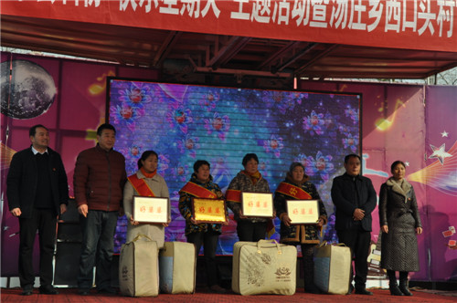 當(dāng)日,來(lái)自縣中醫(yī)院、縣衛(wèi)校附屬醫(yī)院的醫(yī)生在現(xiàn)場(chǎng)開(kāi)展義診活動(dòng),縣文聯(lián)開(kāi)展了春聯(lián)義寫(xiě)活動(dòng),縣科協(xié)、移動(dòng)公司等單位開(kāi)展了科技文化宣傳活動(dòng)。會(huì)議對(duì)湯莊鄉(xiāng)西口村評(píng)選出的“脫貧光榮戶(hù)、好婆婆、好媳婦、好鄉(xiāng)賢”等進(jìn)行表彰,縣委宣傳部副部長(zhǎng)李全力、縣科協(xié)主席陳玲、湯莊鄉(xiāng)鄉(xiāng)長(zhǎng)胡金旗等為獲獎(jiǎng)人員頒獎(jiǎng)。來(lái)自縣文化部門(mén)的文藝志愿者還為村民表演了精彩的文藝節(jié)目。