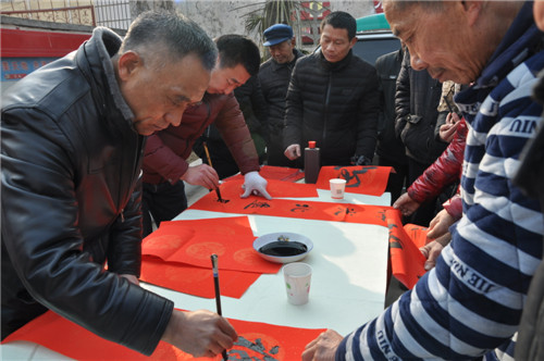 “我剛搬新家,要副大的對(duì)聯(lián)!”1月20日,在商水縣湯莊鄉(xiāng)西口村文化大院義寫(xiě)春 聯(lián)現(xiàn)場(chǎng),劉麗擠在人群著高聲對(duì)埋頭寫(xiě)字的書(shū)法老師說(shuō)。當(dāng)天,商水縣科協(xié)、湯莊鄉(xiāng) 政府聯(lián)合主辦的“快樂(lè)星期天”暨“道德模范”表彰大會(huì)在這里舉行。