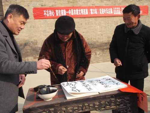 鄧城鎮(zhèn)范莊村72歲的范長(zhǎng)印老人觀展后感觸頗深地說(shuō):“這些展品我很多都見(jiàn)過(guò)、用過(guò),不過(guò)用起來(lái)真費(fèi)勁真受罪??!現(xiàn)在農(nóng)忙季節(jié)機(jī)器一響,糧食嘩啦啦就進(jìn)家了。我這個(gè)年齡的人最能體會(huì)到咱們國(guó)家的進(jìn)步和社會(huì)的美好!”隨后,老人在留言薄上用握慣農(nóng)具的粗糙大手握起毛筆寫(xiě)下了“新時(shí)代,得民心”幾個(gè)字。字雖不工整但他的滿腔真情感動(dòng)了在場(chǎng)的群眾,大家把熱烈的掌聲送給范長(zhǎng)印老人。