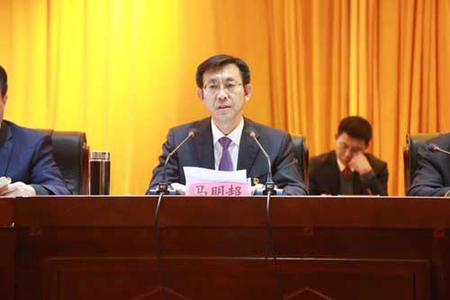 縣委書記馬明超主持會議并代表縣委常委會作工作報(bào)告??h委副書記、縣長王毅代表縣委常委會總結(jié)2018年經(jīng)濟(jì)工作,安排部署2019年經(jīng)濟(jì)工作。